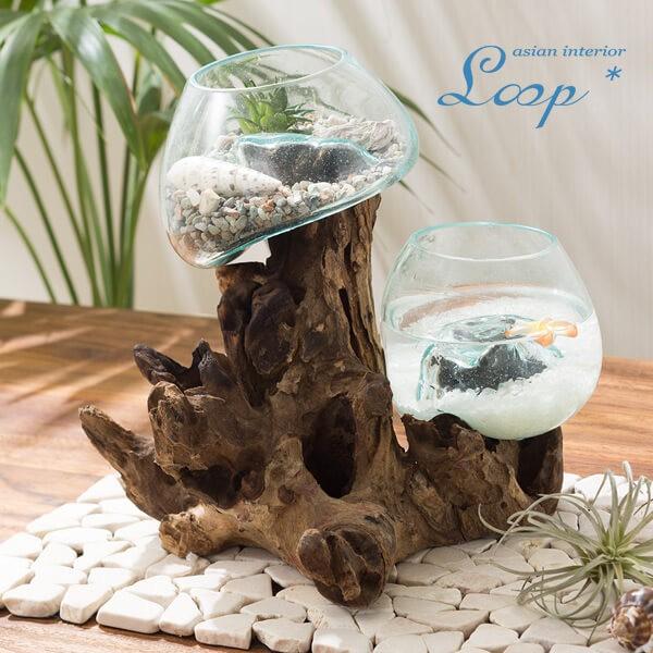 アジアン雑貨 おしゃれ 人気 テラリウム 金魚鉢 花器 プランター バリガラス チーク 天然木 ナチュラル オブジェ 置物 雑貨 インテリア アジアンインテリア ループ 通販 Yahoo ショッピング