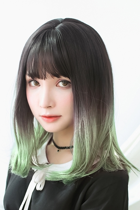 コスプレ ウィッグ Tefure テフリ Modeミディ ナチュラルブラック アッシュグリーン アニメイト